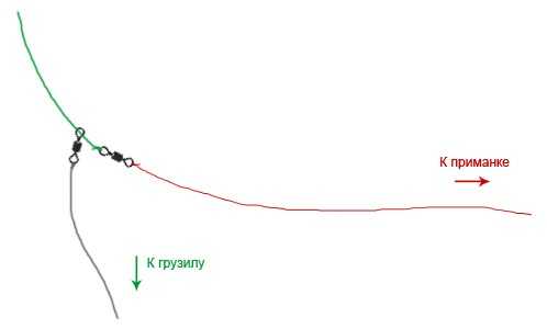 Боковой отводной поводок можно привязать непосредственно к основной леске подходящим узлом, однако лучше использовать крепление через вертлюжок: при этом варианте монтажа вероятность запутывания оснастки и вовсе сводится практически нулю.