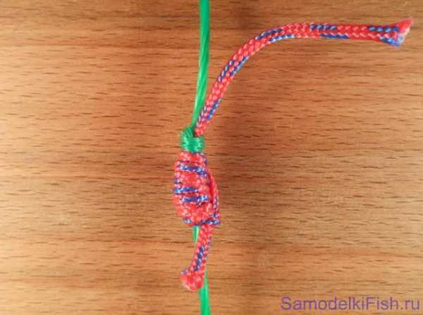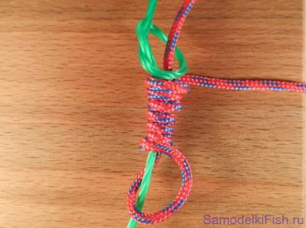 - Концом поводковой лески сделать несколько витков вокруг основной.