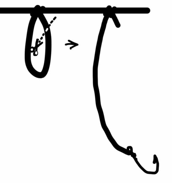 2. Более хитрый способ, требующий практики привязки поводка с крючком к основной леске.