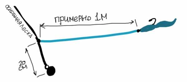 На расстоянии 20 см выше по леске привязываем отводной поводок