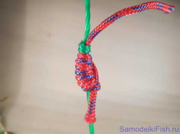- Теперь необходимо продеть сквозь ручку конец поводка и осторожно затянуть узел, при этом следить за тем, чтобы витки не спутывались и не нахлестывались друг на друга.