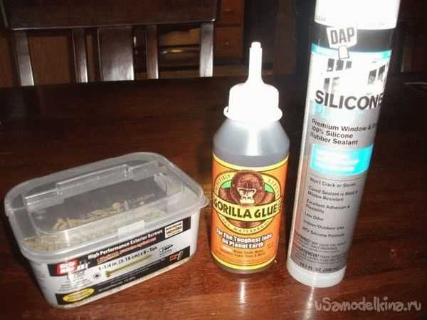 Перед тем как скреплять части гвоздями, предварительно используем клей.