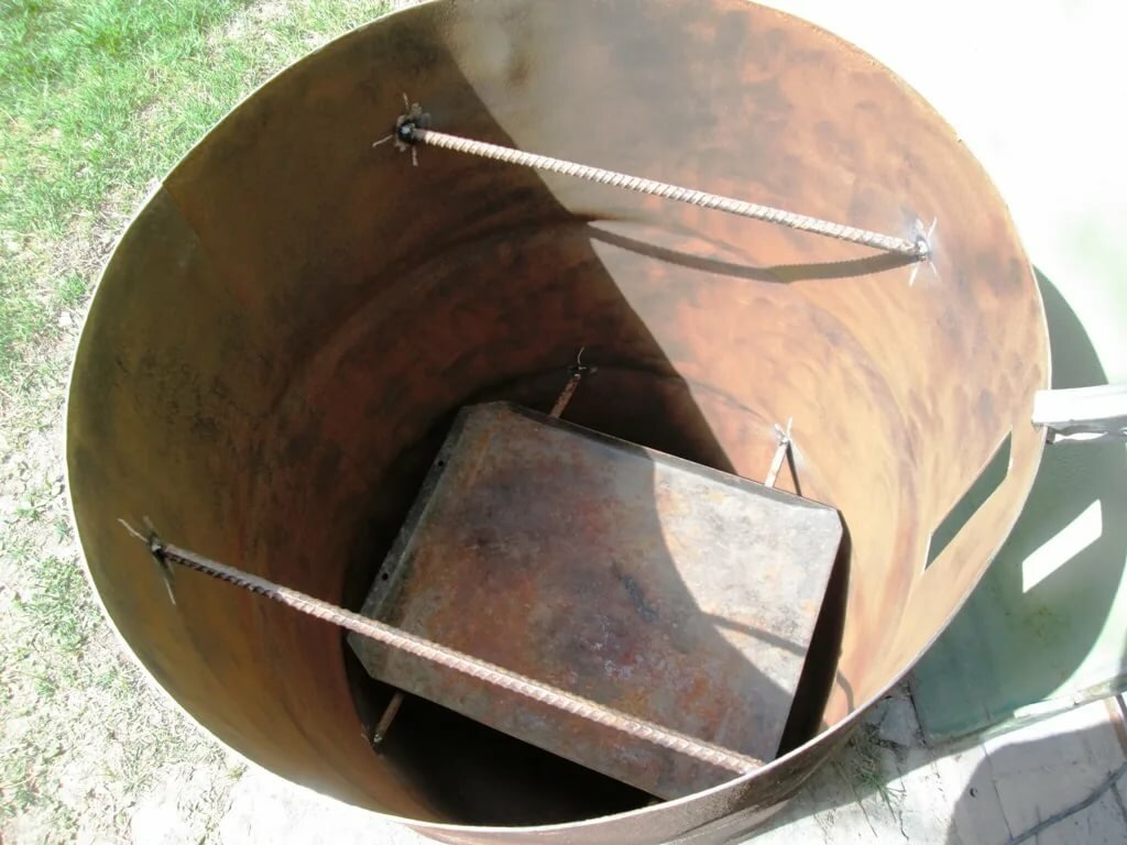 - Материал для изготовления. То, что это металл, понятно. Но желательно использовать «нержавейку». Хотя, в принципе, подойдет и готовый резервуар из железа. Например, бочка или ящик для фасовки сыпучих продуктов (только не из-под лакокрасочных составов). Некоторые умельцы приспосабливают даже оцинкованное ведро. Конструкции из кирпича более сложные для самостоятельного изготовления, так как мало кто сумеет качественно возвести кладку. Поэтому их рассматривать при недостатке опыта не имеет смысла.