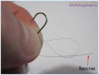 Продеть другой конец поводка с крючком через петлю основного шнура.