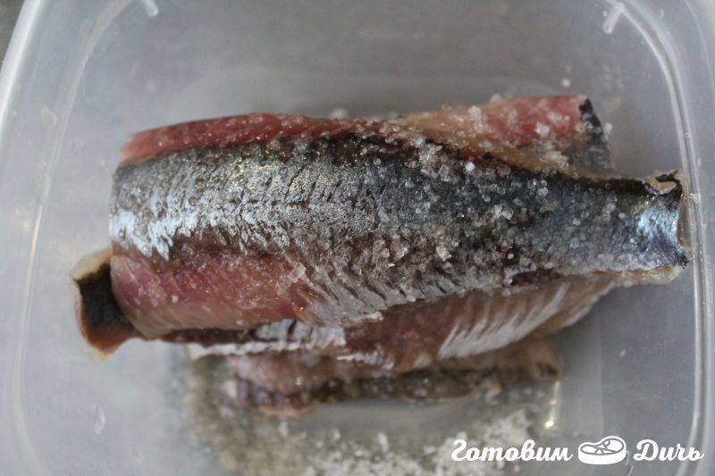 Важно! Селедка в момент засолки должна стоять в холодильнике.