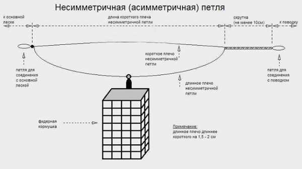Сегодня несимметричная петля для фидера применяется многими нашими продвинутыми рыбаками и спортсмена, как самая чувствительная, позволяющая зафиксировать малейший контакт рыбы с приманкой.