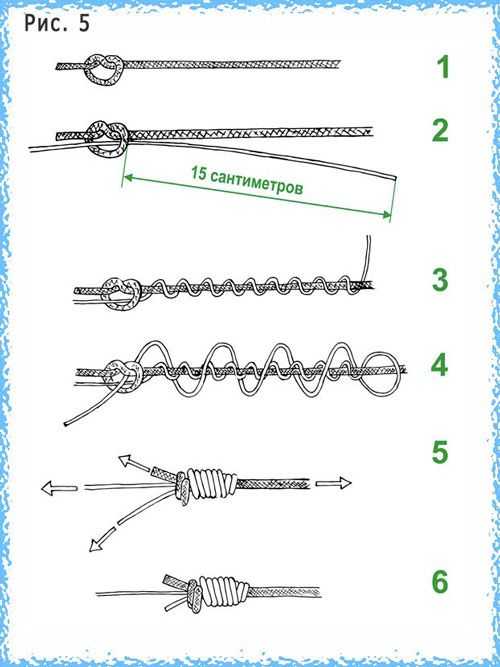 Связать «Морковку» не составит труда, но, если вы не будете соблюдать алгоритм действий, конструкция получится недостаточно прочной, неровной или же леска порвется при сильном натяжении (рисунок 5).