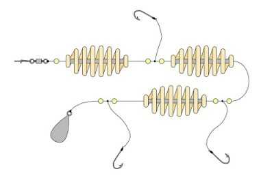 - Больше крючков, больше шансов, что они запутаются между собой или с кормушками. Этот неприятный момент можно обойти, сделав поводки на крючках минимальными.