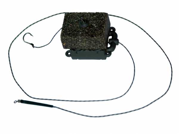 Кусок специальной резины вместе с концевым грузилом рыболов забрасывает или завозит на лодке к месту ужения. Он закрепляется, как правило, на основной леске с поводками.