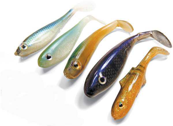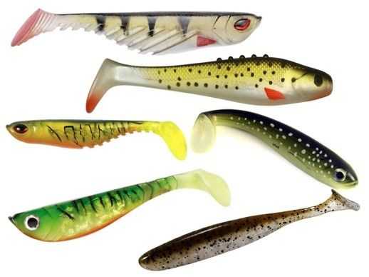 Пожалуй, самый популярный вид силиконовых приманок на щуку, который многие рыболовы, предпочитающие классические джиговые оснастки, считают и наиболее эффективным. Форма таких приманок обычно напоминает небольшую рыбку и имеет копытообразный кончик хвоста, расположенный перпендикулярно телу наживки. Благодаря подобной форме, приманка при движении, под воздействием сопротивлением воды, совершает активные колебания задней частью, что очень эффективно воздействует как на боковую линию щуки, так и на её зрительное восприятия, провоцируя рыбу на атаку.