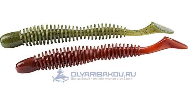Сам силикон мягкий и обильно пахнущий. Это плюс, это же и минус – больше 4-5 поклевок ни одна приманка у меня не переживала. По размерам весной я рекомендую использовать 4 дюйма, осенью — 5-6 дюймов: мелочь это эффективно отсечет, а крупная щука вам будет благодарна. Что касается цвета, то лучше всего у меня ловит Sawamura с коричневой или зеленой спинкой и более светлым брюшком.