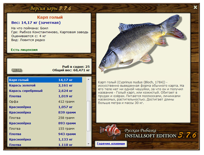Отличается наличием редких крупных чешуек. Нечасто встречается в природе, так как медленно растёт. Искусственно выращенные особи наиболее жирные среди карповых.
