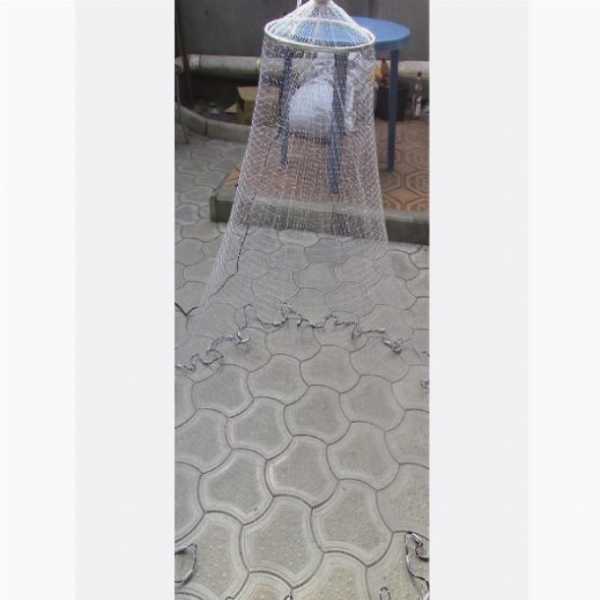 сеть кастинговая с грузами внутри шнура – практически не путается. Очень удобна в забросе и отлично расправляется в круг. Рекомендую брать как можно больший размер, так как по практике настоящяя рыбалка начинается с сетью более 4х метров в диаметре.