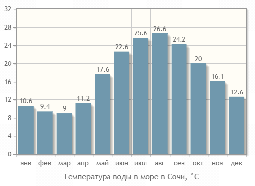 Температура воды в течение года6°1