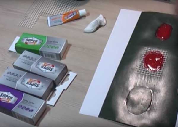 - Клей нанести на латку, повреждённое место.