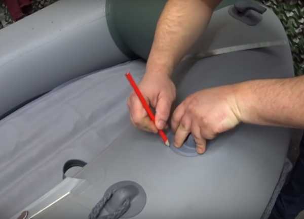 - В комплекте с лодкой должен идти ремкомплект. В нём почти всегда находятся латки из ПВХ. Приложить латку на место повреждения. Обвести её маркером или карандашом.
