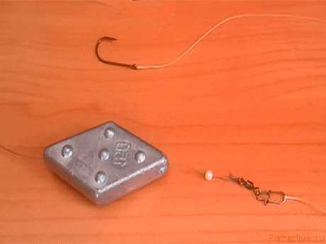 Оснастка донки идентична оснастке на налима. Здесь применяется скользящее грузило для лучшей идентификации поклевки.