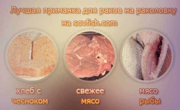 При ловле этих членистоногих можно использовать разные приманки, но все зависит от того, когда ловить раков — весной или осенью. Допустим, весной и летом специалисты советуют ловить их на хлеб с чесноком, а осенью – на мясо и рыбу.