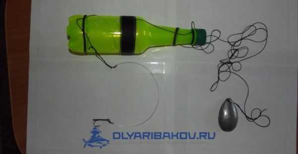 К диску леска крепится с помощью двойной петли. В качестве грузила используется дробинка из олова или другой материал весом около 15 г. На леску фиксируется поводок из струны толщиной примерно 0,3 мм. Его длина — 40 см. На конце располагается остро заточенный крючок или тройник.