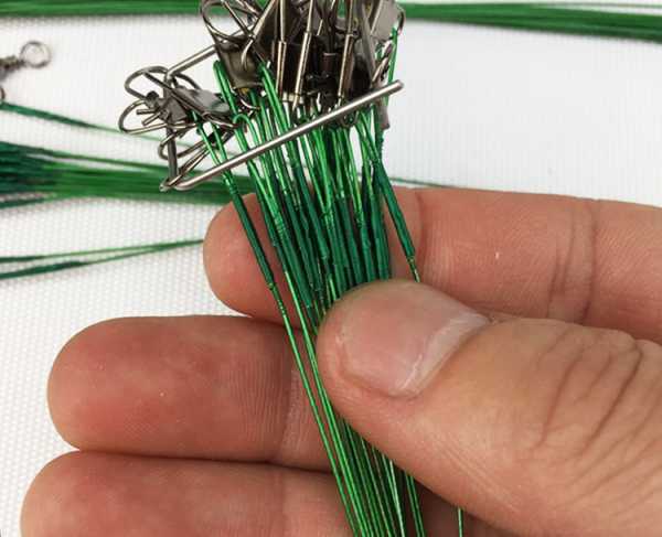 Хороши в использовании спиннинговые стальные поводки с нейлоновым покрытием. Они достаточно дешевы и долговечны, а нейтральный цвет оболочки неплохо их маскирует. Перед использованием снимаем всю фурнитуру, цепляем двойник, а живца насаживаем способом, аналогичным предыдущему.