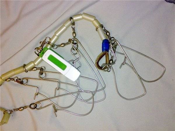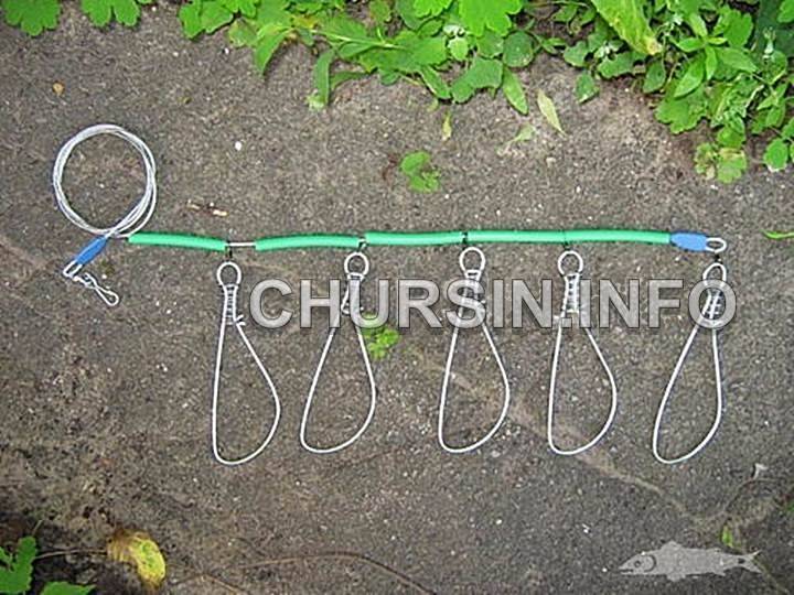 К шнуру вместо поводков крепят с десяток небольших куканов.