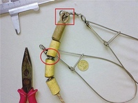 Застежку как наиболее ответственный элемент лучше сделать самому, из проволоки 2-3 мм. У каждого свои конструкции застежек. Из того, что описано в прессе, мало какие застежки гарантируют сохранность улова. Сколько было случаев, когда по вине обычных застежек уходили здоровенные щуки и судаки! А бывало, что кукан застревал в корягах и приходилось его обрывать. Под впечатлением этих ЧП я стал делать свои застежки, обтекаемой формы и обязательно с предохранителем: пока не снимешь застежку с предохранителя, она не откроется.