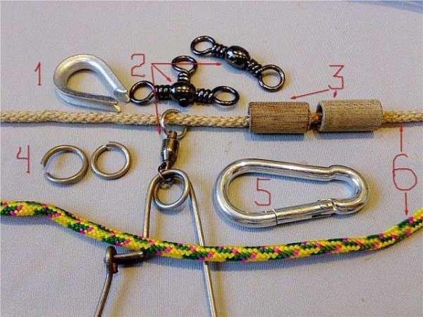 - Шнур или трос. Основа снасти, на которой крепятся остальные ее элементы.