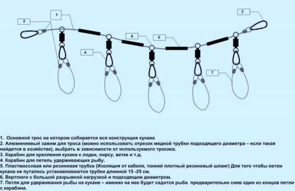 Основной задачей кукана является хранение пойманной рыбы, не травмировав её и сохраняя её свежесть. Зачастую это шнур с петлями из проволоки по всей его длине. Сегодня мы рассмотри как сделать кукан своими руками.