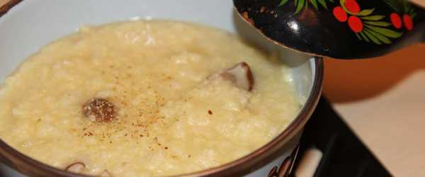 - 3. Сливаем воду с пшена, отправляем его к картошке и варим до хорошей мягкости, разрешается передержать.