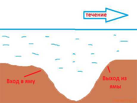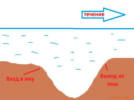 Определить на выходе или на входе будет стоять лещ можно только опытным путем. Здесь нужно знать утренние места стоянки леща и ориентироваться на них. Если такое место находится ниже ямы, то лещ будет стоять на входе, а если выше, то на выходе из ямы.