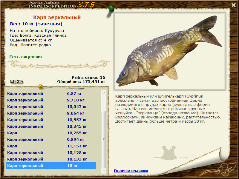 Подбирается леска или шнур с грузоподъёмностью от 10-15-и кг. Но это не значит, что качественная леска с запасом грузоподъёмности позволяет выполнять форсированное вываживание крупного карпа.