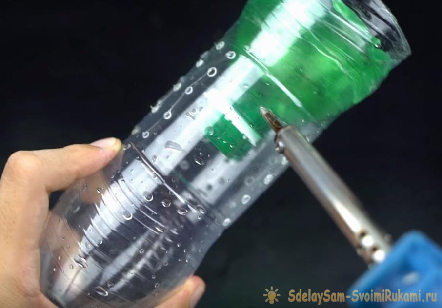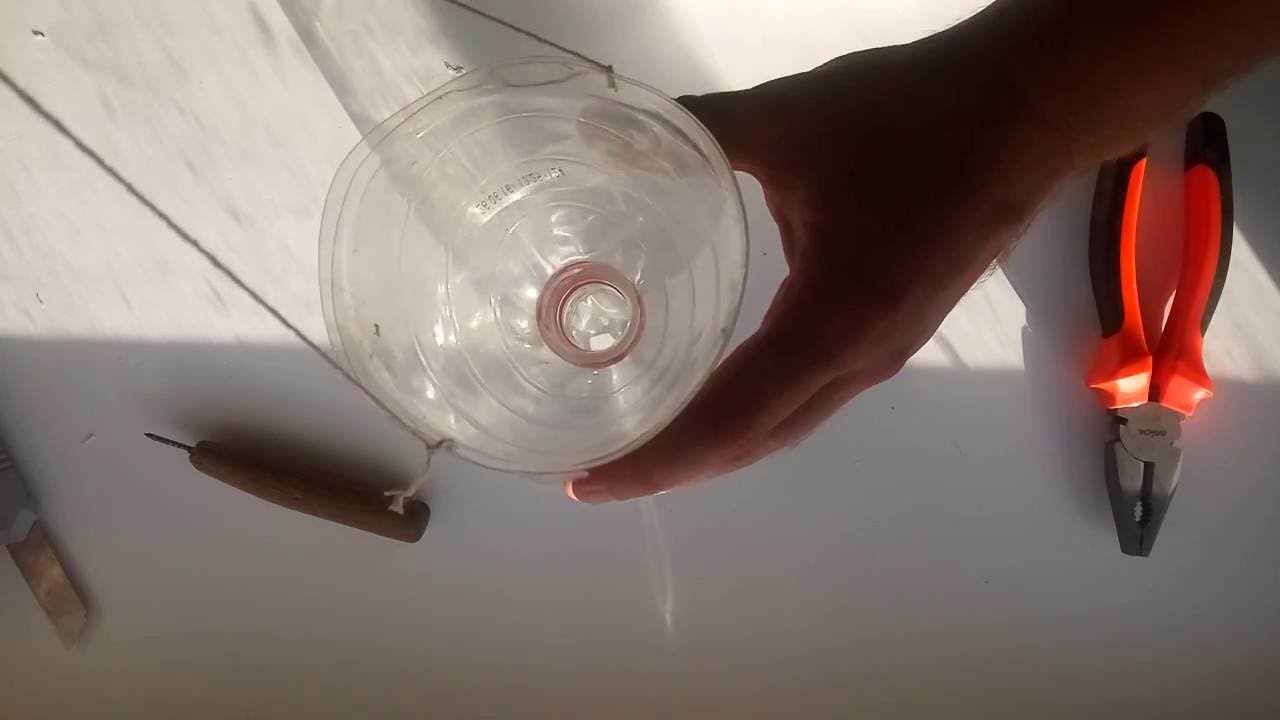 Все что вам потребуется это пластиковая бутылка, пистолет с горячим клеем, паяльник, нож, леска или веревка.