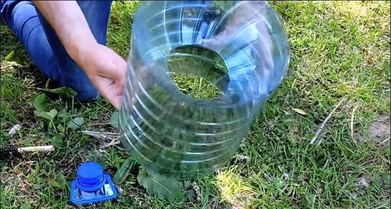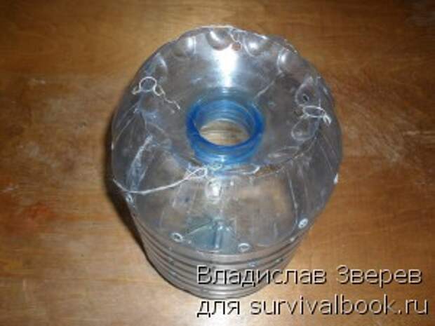 У бутылки отрезается горловина, и в перевернутом виде плотно