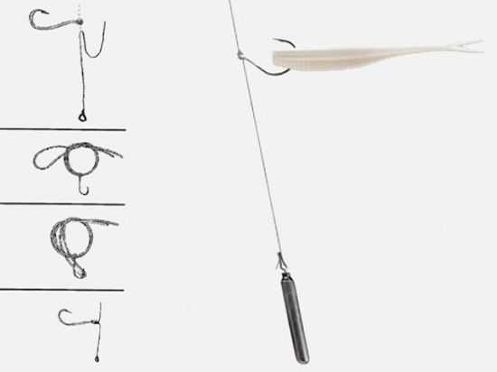 Дроп-шот представляет собой грузик с расположенным в 5–7 см от него крючком с силиконовой приманкой.