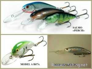 - Ныряющие или же глубинные воблеры используются на больших глубинах примерно 6 – 8 метров.