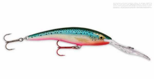 Rapala Deep Tail Dancer. Легендарный троллинговый воблер! Также паршиво летит, как и Сальмовский Хорнет, но это чисто троллинговая приманка. Фантастическая высокочастоная игра. Не даром его назвали “танцором”. Что примечательно, самая крупная модель — 11 см, способна заныривать до 9м!!!