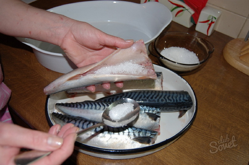 сухим способомНе хочется идти простым путем, просто натерев тушку макрели солью, хотя и такой вариант не исключен. Предлагаю добавить немного пряностей. Данный способ засолки предполагает длительное хранение рыбы.
