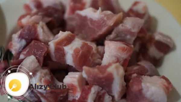 Π‘ ΡΠ°Π»Π° ΡΠ½ΠΈΠΌΠ°ΡΡ ΡΠΊΡΡΠΊΡ ΠΈ Π½Π°ΡΠ΅Π·Π°ΡΡ ΠΌΠ΅Π»ΠΊΠΈΠΌΠΈ ΠΊΡΡΠΎΡΠΊΠ°ΠΌΠΈ. ΠΠ½Π°Π»ΠΎΠ³ΠΈΡΠ½ΠΎ ΠΏΠΎΡΡΡΠΏΠ°ΡΡ Ρ ΠΌΡΡΠΎΠΌ, ΡΠΎΠ»ΡΠΊΠΎ ΠΊΡΡΠΎΡΠΊΠΈ Π΄Π΅Π»Π°ΡΡ Π½Π΅ΠΌΠ½ΠΎΠ³ΠΎ ΠΊΡΡΠΏΠ½Π΅Π΅. Π Π°ΡΠΊΠ°Π»ΠΈΠ² Π²ΡΡΠΎΠΊΡΡ ΡΠΊΠΎΠ²ΠΎΡΠΎΠ΄Ρ, Π²ΡΠΊΠ»Π°Π΄ΡΠ²Π°ΡΡ Π² Π½Π΅Ρ ΡΠ°Π»ΠΎ, Π° Π·Π°ΡΠ΅ΠΌ ΠΌΡΡΠΎ.