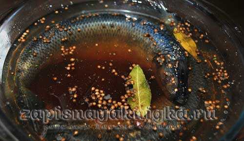 6. После того, как рыба настоялась в пряной сухой смеси, заливаем нашим подготовленным рассолом.
