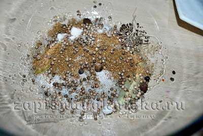 Если готового набора специй нет, можно приготовить его самому, используя для этих целей гвоздику, перец горошком, кориандр и горчицу в зернах, пару лавровых листочков и ароматные травы.