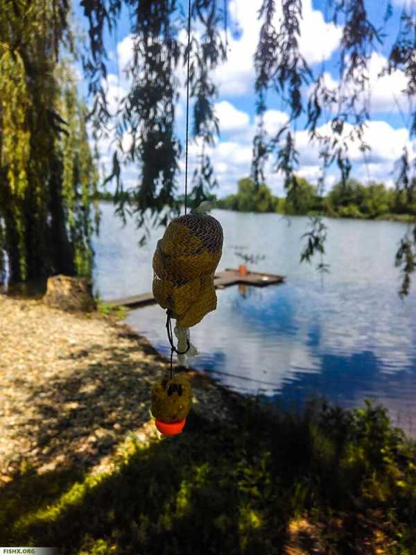 Во втором случае приманка лежит максимум в 10 см от кормушки. Карп или сазан подходит, кормится из кормушки и заодно заинтересуется вашей приманкой. Недостаток метода в том, что карпу может понравиться прикормка, но не понравится приманка. Но попробовать такой способ всё равно не мешает.