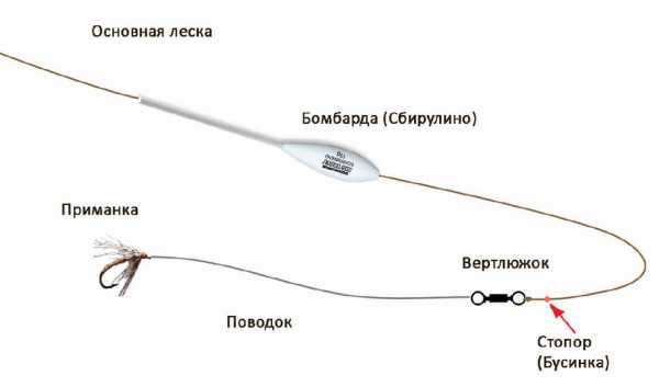 На сегодняшний день есть много вариантов, как должна выглядеть оснастка сбирулино. Рассмотрим классический вариант монтажа бомбарды: