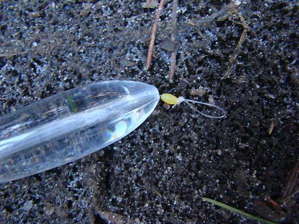 Получив в домашних условиях свой самодельный поплавок, необходимо заняться его дальнейшей оснасткой. Для этого пригодится поводок произвольной длины, диаметр его обычно составляет 0,25 мм, с одной стороны которого крепится вертлюг для монтажа крючка. Далее на леску одевают силиконовый стопор для ограничения хода поводка, а чтобы вся конструкция не проскользнула в изготовленную ампулу антенны, крепят бусинку достаточного размера.