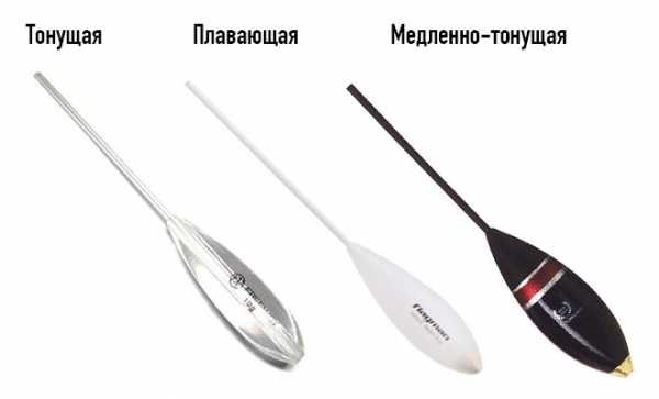 Итак: поплавки по плавучести делятся на плавающие — предназначенные для ловли на поверхности воды, медленно тонущие — этот тип позволяет ловить на определённом глубинном горизонте и быстро тонущие — которыми можно достаточно быстро заглубить приманку мизерного размера и провести её у самого дна.