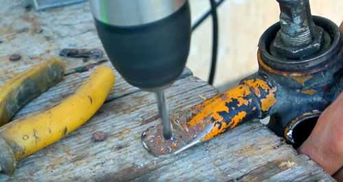 ![]() | В сплющенном «ушке» просверливаем отверстие для крепежа. |