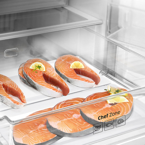 Выделите для продуктов х/к отдельные полочки в холодильнике. Упакуйте рыбу. Можно обернуть ее фольгой или промасленной плотной бумагой.