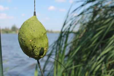 Суть такой современной приманки заключается в том, что попадая в воду, шарик начинает выкидывать в воду хлопья, состоящие из корма, чем собственно и привлекают амура.