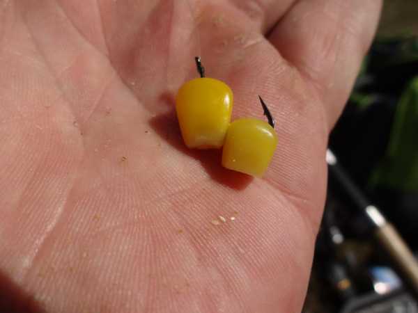 Зачастую при насаживании кукурузных зерен непосредственно на крючок их используют не более 5-ти штук, а при монтаже на волосяную оснастку применяют от 4 до 8 зерен.