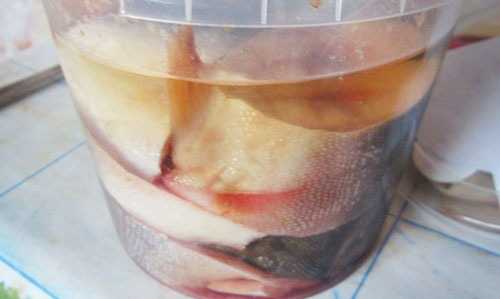- Солим рыбу: разделанную нерку выложите в любую посуду, кроме металлической и залейте солевым раствором, чтобы он полностью покрывал рыбу. Закройте крышкой и уберите в холодильник.