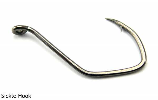 - Sickle Hook имеет серпообразную конфигурацией загиба.